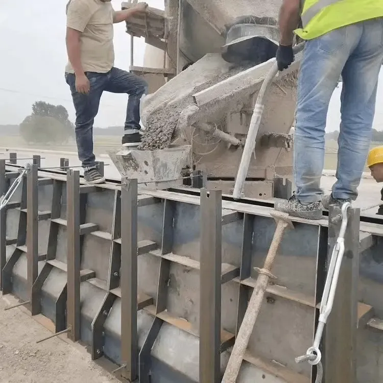 - Pouring Process:Adopt appropriate pouring methods, such as using a concrete pump truck or a crane with a hopper. Control the pouring height carefully, casting in layers and vibrating thoroughly to ensure density. This prevents common quality issues like honeycombing or pitted surfaces.Critical Note:During vibration, ensure the vibrator does not directly collide with the steel face to avoid denting or deformation.